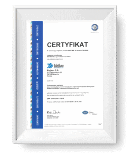 Wierzymy, że wysoka jakość świadczonych przez nas usług jest najlepszym dowodem na niezawodność naszych działań. Dlatego dokładamy wszelkich starań, aby nasza praca wykonywana była w zgodzie z najwyższymi normami. Potwierdzeniem tych wysiłków są otrzymane certyfikaty, wskazujące na zgodność stosowanych przez nas procedur w zakresie norm: